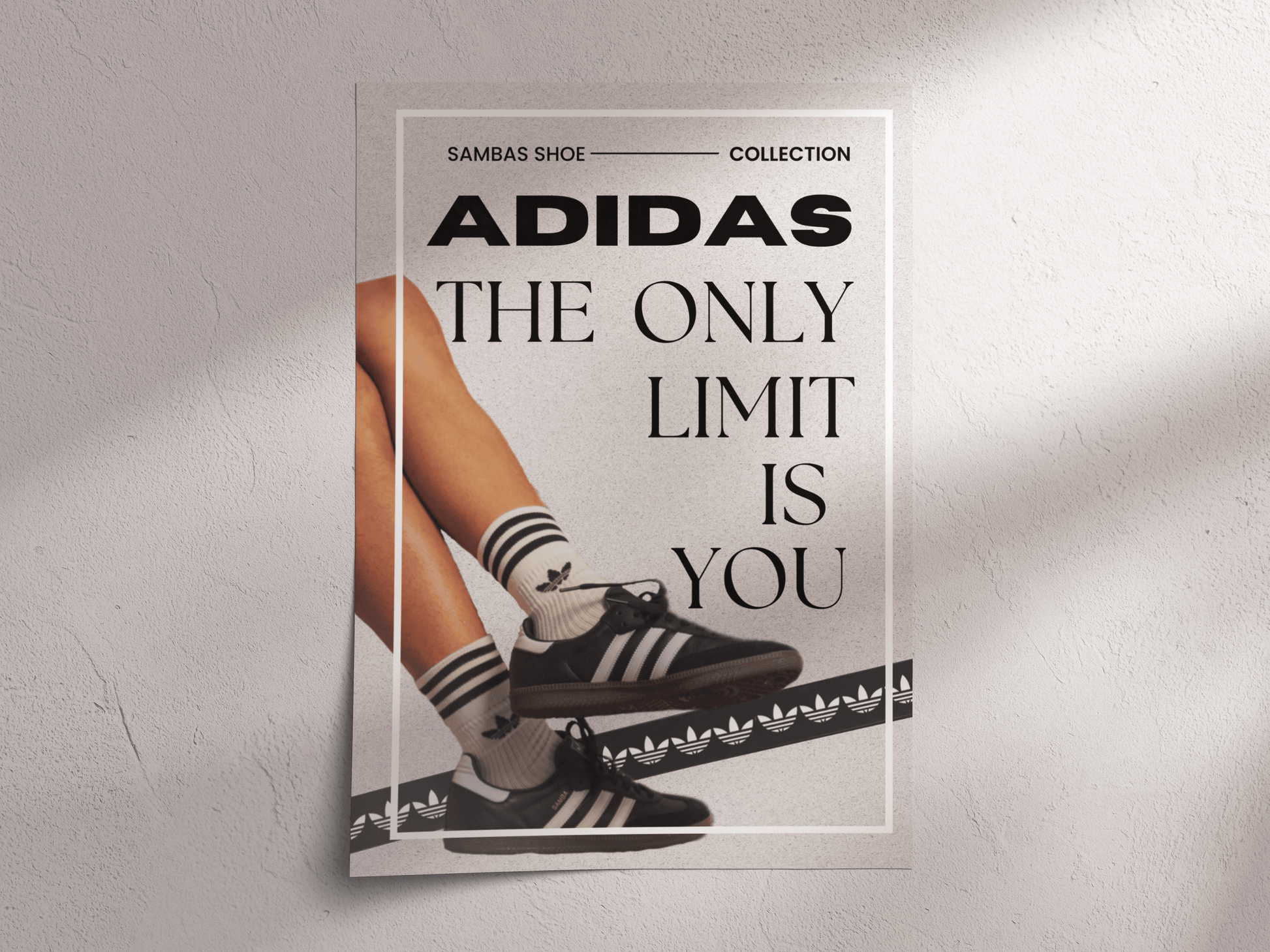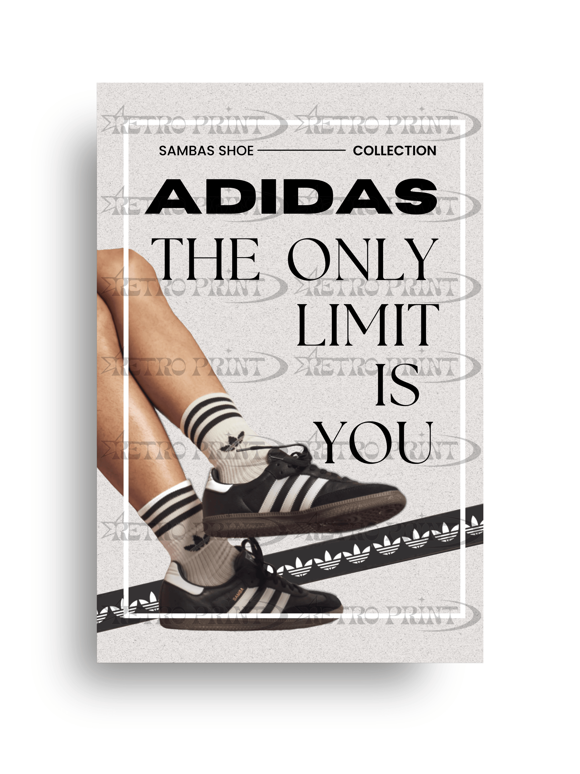 Clean, bold, and empowering. This minimalist Adidas Sambas poster highlights the sleek design of a true classic, paired with sharp typography that inspires individuality and motion. A great pick for those who value modern style with purpose.